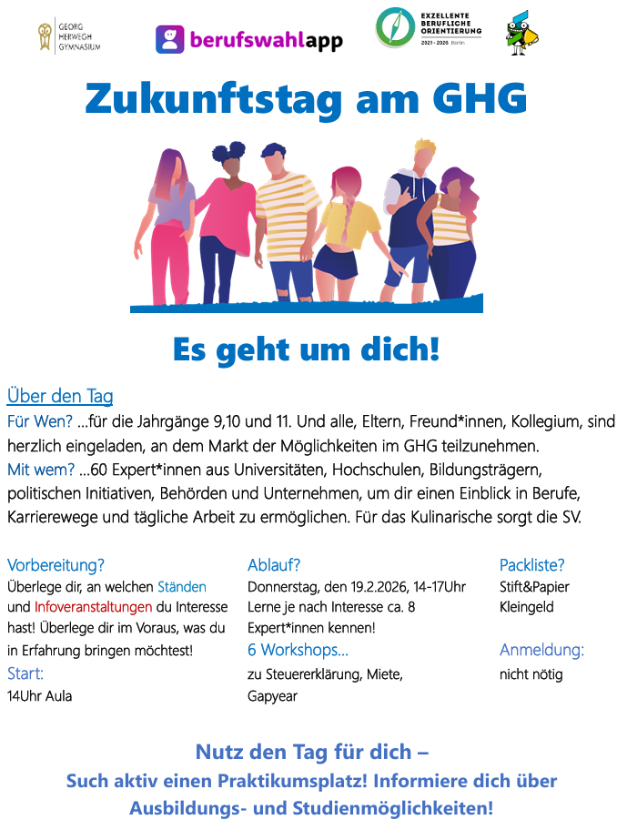 Das Georg-Herwegh-Gymnasium begrüßt seine Besucher*innen. Die Anmeldung für die 7. Klassen hat begonnen.